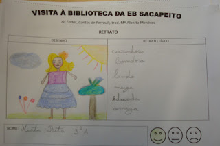 Por fim, todos os alunos puderam praticar a expressão escrita e dar largas à sua imaginação através da expressão plástica desenhando e descrevendo uma das irmãs intervenientes na história.